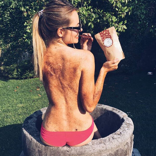 Coffea Robusta Seed Powder (freshly ground Robusta coffee), Prunus Amygdalus Dulcis Oil (almond oil), Cocos Nucifera Oil (coconut oil), Sucrose (brown sugar), Maris Sal (sea salt), Parfum, Tocopherol (vitamin E)