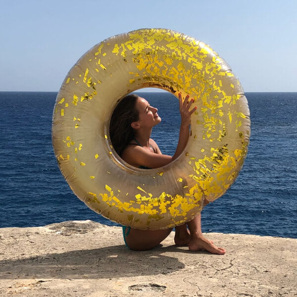 Large MARK inflatable swim ring with glitters is the ideal companion to relax during hot summer days. It's easy to fit into a beach bag so you can enjoy a lot of fun at the seaside, lake or pool ;)