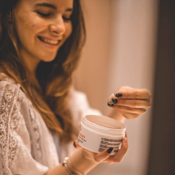 Sugar peeling MARK gets rid of dead skin cells, stimulates the blood circulation in the skin as well as cleans the pores. Due to its natural ingredients, it has a strong hydration, relaxing and rejuvenation effect on your skin. It is great as an SOS product once your skin is dehydrated. MARK sugar scrub is a great help when healthy and beautiful skin is the ultimate goal.